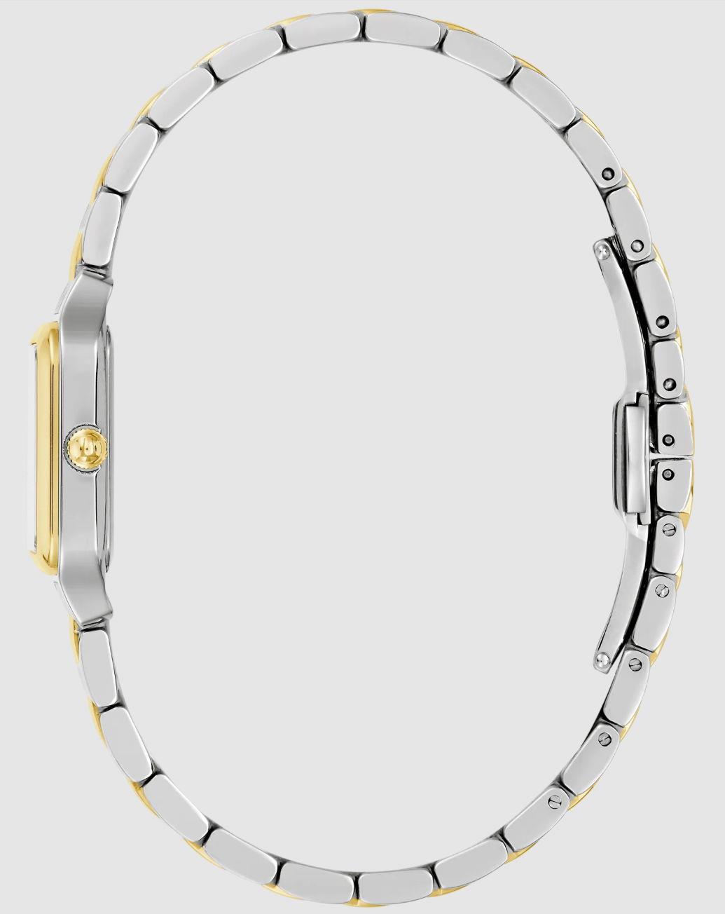 • Stainless steel gold plated accents band.