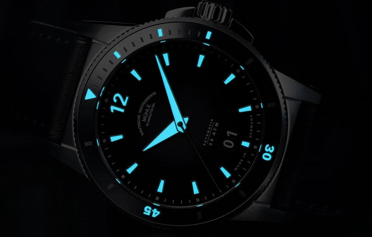 • Raised steel tone polished markers super-luminova 5 minute/hour markers blue color dial.