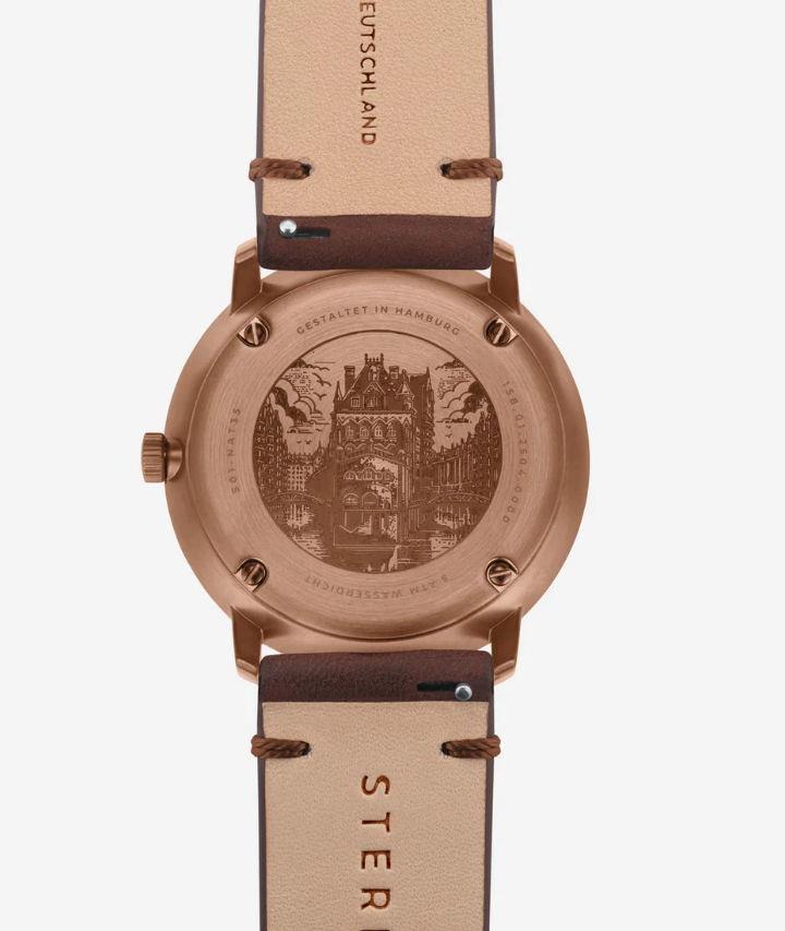 • Solid 316l stainless steel bronze plated case.